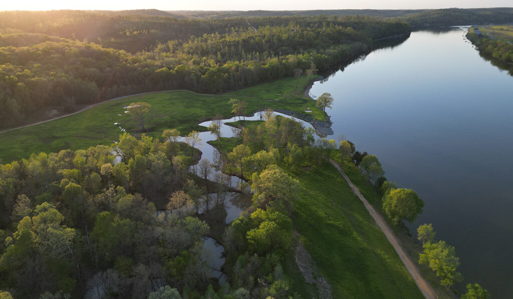 The main land portion of roughly 1,000± acres is a good mix of open pasture and hardwoods. Historically, the fertile bottomland soils have been utilized for row crop production, but currently, the improved pasture ground is cut for hay consisting of ryegrass, fescue, orchard grass and clover blend. Roughly 300± acres of open ground and pasture, 38± private lake, 170± acres of WRP easement teaming with wildlife and waterfowl. Over 13 miles of improved interior road network, along with a freshly graded 3,100-foot private plane runway that makes a quick 25-minute flight to Nashville and Memphis by private aircraft. Enjoy the benefits of a fully approved and charted airfield—Island Bend Farms Airport (FAA Chart Identifier 4TN9). Two separate inlets from the Tennessee River meander through the bottomland, forming the private lake and flooded cypress slough. The wooded hilltops provide ideal sites for building your very own 5+ bedroom estate, compound or resort overlooking the river for miles. Included with the property are two half-acre lots on Scenic Lane as part of the Scenic Lane River housing development on the riverbank, as well as a modern tiny home on stilts overlooking the river, inlet and beach area, and a private pool coming soon! There is also a 148± foot by 96± foot pole barn on the property for storage of all farming, hunting or maintenance equipment needed.
