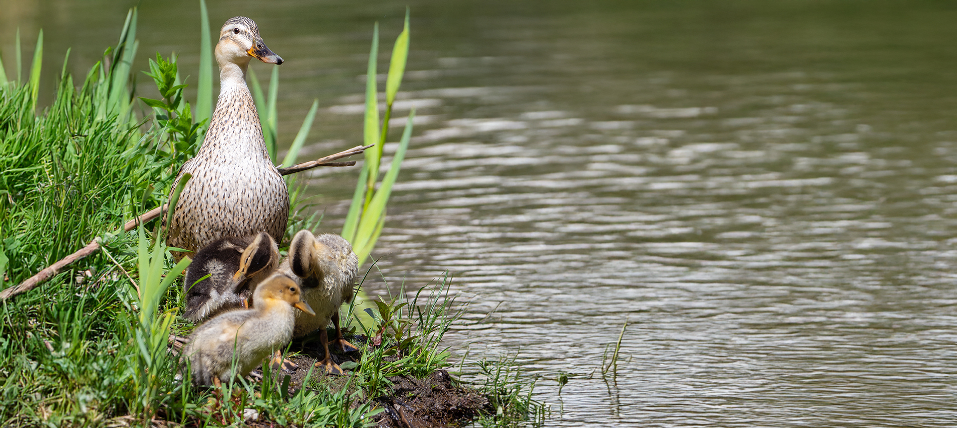 After they hatch, the ducklings will spend 24 hours to 48 hours on the nest. Then, the hen will lead them to a wetland and she will watch over them while they feed. Hopefully, the wetland is rich in aquatic insects and invertebrates because that’s what the ducklings need to thrive. It takes about 58 days before they’re able to fly, so the ducklings are especially vulnerable to predators during that period. Staying on the water with access to dense vegetation is the key to duckling survival.